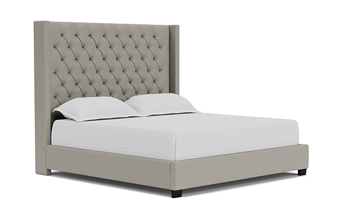 Traditional Styling ,High profile upholstered platform bed ,Button tufted headboard ,Black wood block feet,Height:116,Depth:116,Width:116Brand