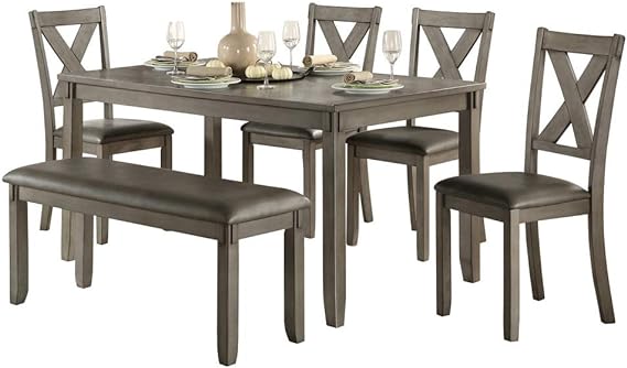 A shimmering gray marble top is the centerpiece of this elegant and functional dining set. Paired with ultra-comfortable gray velvet chairs and a bench.Black finished solid wood legs complement the gray marble top .Brand