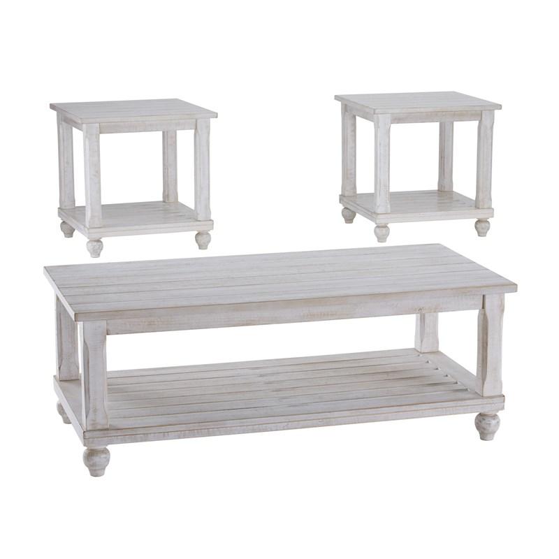 Includes 1 coffee table and 2 end tables ,Made of wood, engineered wood and veneers ,Vintage white finish ,Assembly requiredBrand